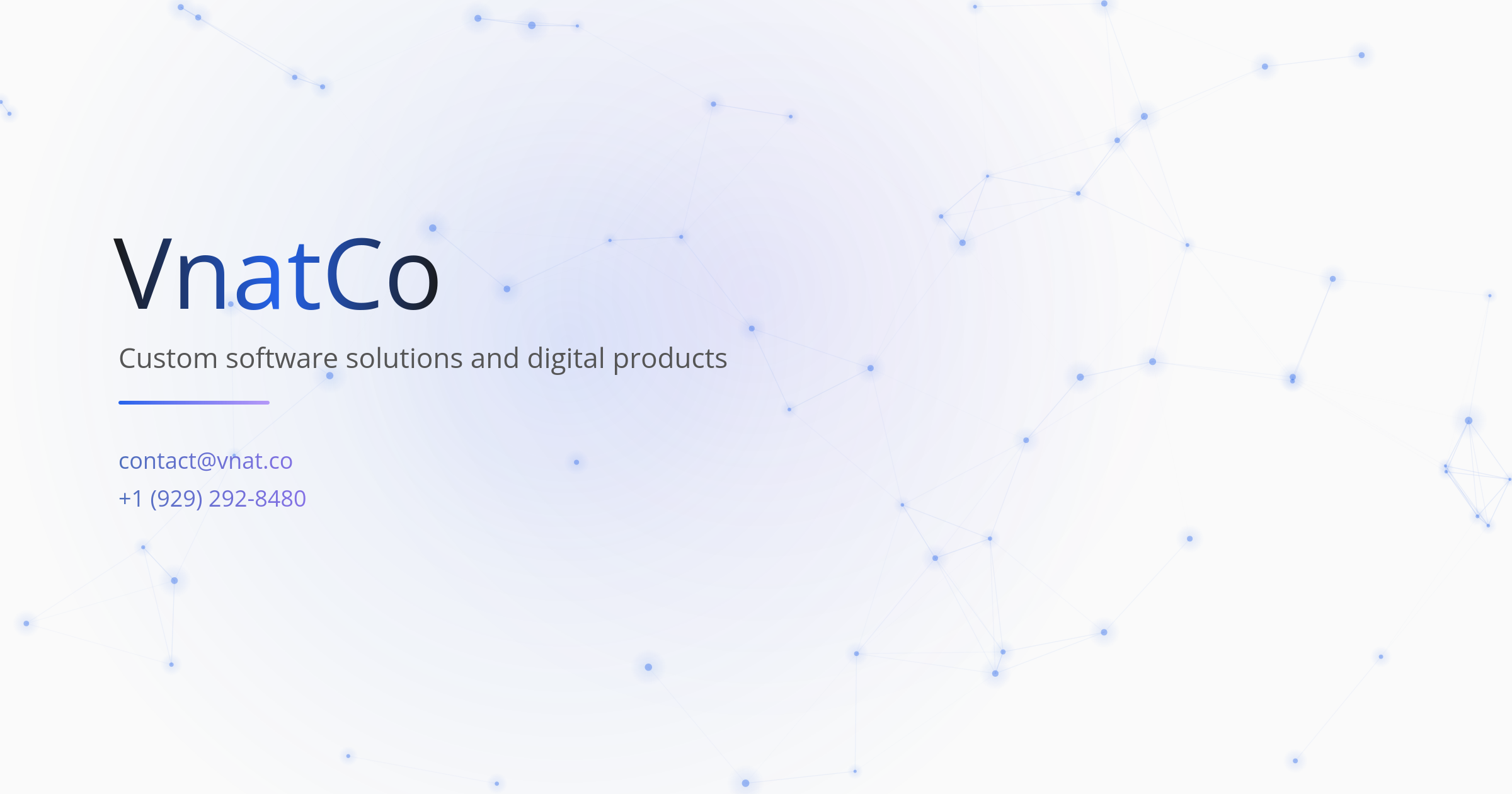 VnatCo builds software products and provides custom software development services for businesses and individuals. From concept to deployment, we craft reliable, scalable solutions tailored to your specific needs - whether you're launching a new product, automating operations, or modernizing existing systems.